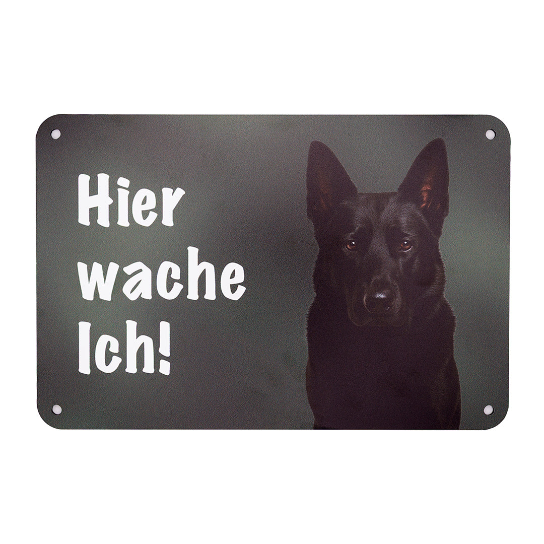 Schwarzer Schäferhund - Deutscher Schäferhund - Hundeschild "Hier wache ich!" für Gartenzaun und Eingangsbereich